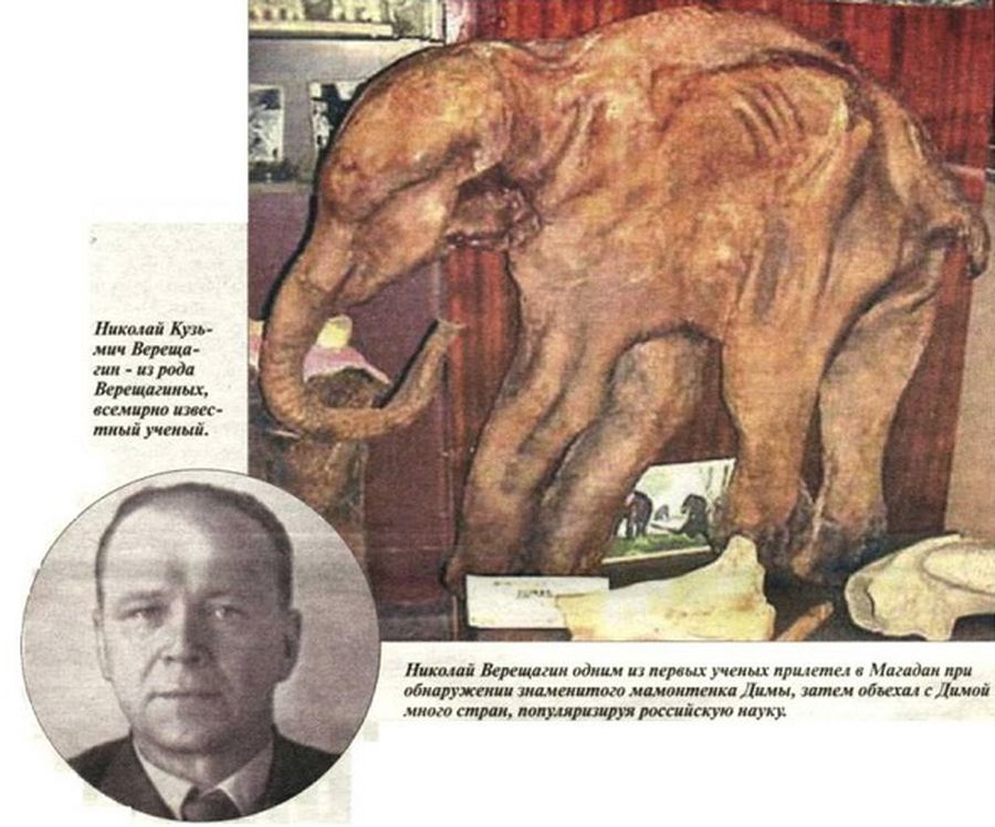 В последний период своей научной деятельности Николай Верещагин сосредоточился на изучении истории формирования фауны млекопитающих северной Евразии в четвертичном периоде. И здесь судьба подарила ему много увлекательных загадок и открытий. Взгляните хотя бы на схему находок мамонтов на территории Сибири. Одна из находок" так и называется - "Мамонт Верещагина" (Хатанга, 1977 год). Николай Кузьмич стал председателем "мамонтового комитета" - Центра по изучению этих животных в СССР. Он одним из первых ученых прилетел в Магадан при обнаружении знаменитого мамонтенка Димы. Верещагин разрабатывал методики и участвовал в изучении мамонта в зооинституте, а затем объехал с Димой много стран, популяризируя российскую науку.