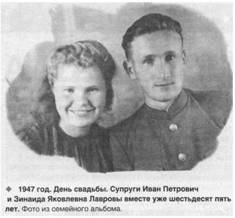 До сих пор Иван Петрович Лавров сохранил оптимизм, веру в людскую доброту, отзывчивость, уважение к людям. Все эти годы рядом с ним его верная спутница Зинаида Яковлевна; как и прежде, звучит их дуэт, исполняющий песни под аккомпанемент баяна в руках Ивана Петровича.