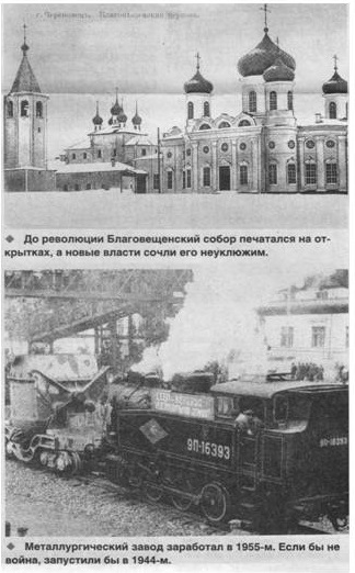 Телеграмма череповецких верующих (от 1938 года) с просьбой о сохранении Благовещенского собора, самого крупного в Череповце (находился на месте нынешней Красноармейской площади), и разрешении на службы адресована самому «тов. Сталину в Кремль». Реакции от «вождя» не последовало, и церковь вскоре была разобрана на стройматериалы. Рассекречены документы, по которым можно проследить борьбу за церковь.