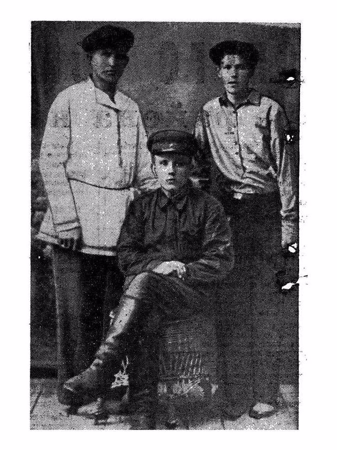 На снимках: А. У. Тихов (крайний слева) с братом Г. У. Тиховым (в центре) и А. Г. Гаврилоым (снимок 1940 года):