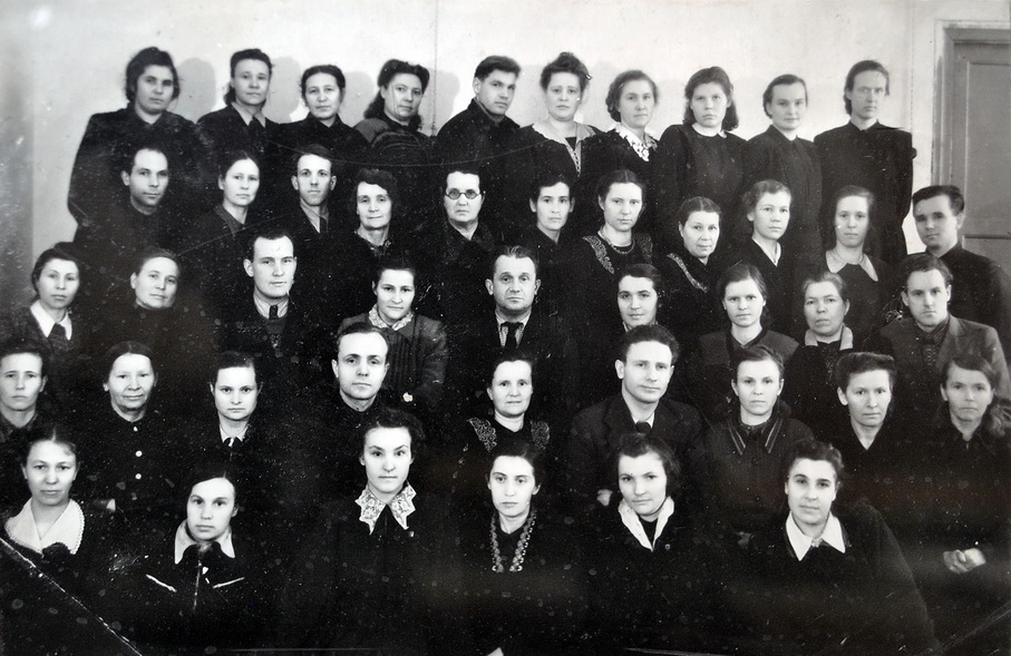 Фото: Средняя школа №8 (1953, фото Г.Ефимовский), Коллектив средней школы №8 (директор Путников Владимир Александрович - 3-й ряд в центре)