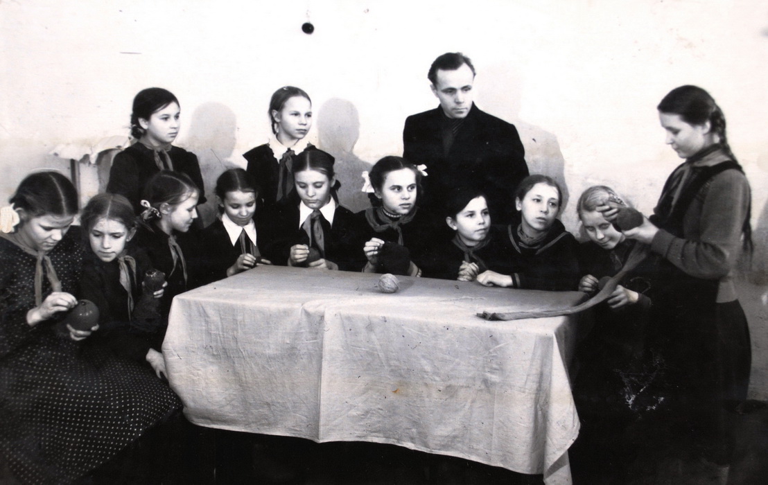 Фото: Сбор пионерского звене «Штопка-нитка» (5д класс школы №8, 1954 год, кл.рук.Волков И.А.) В группе продленного дня школы №8.