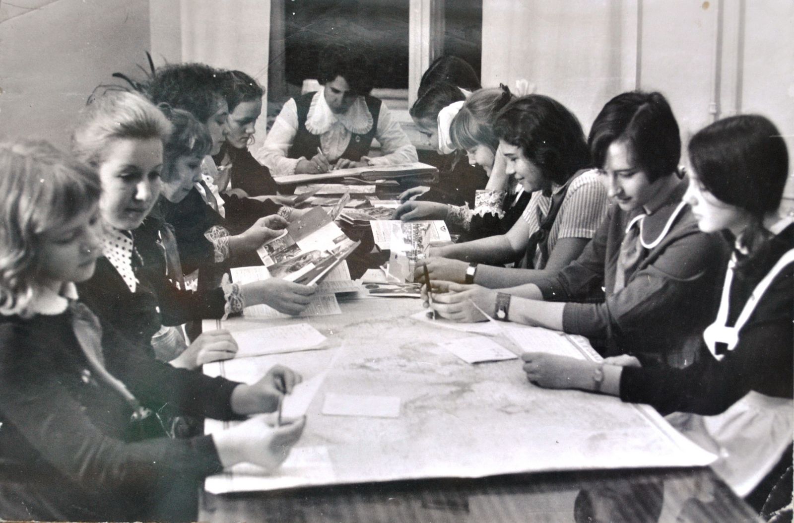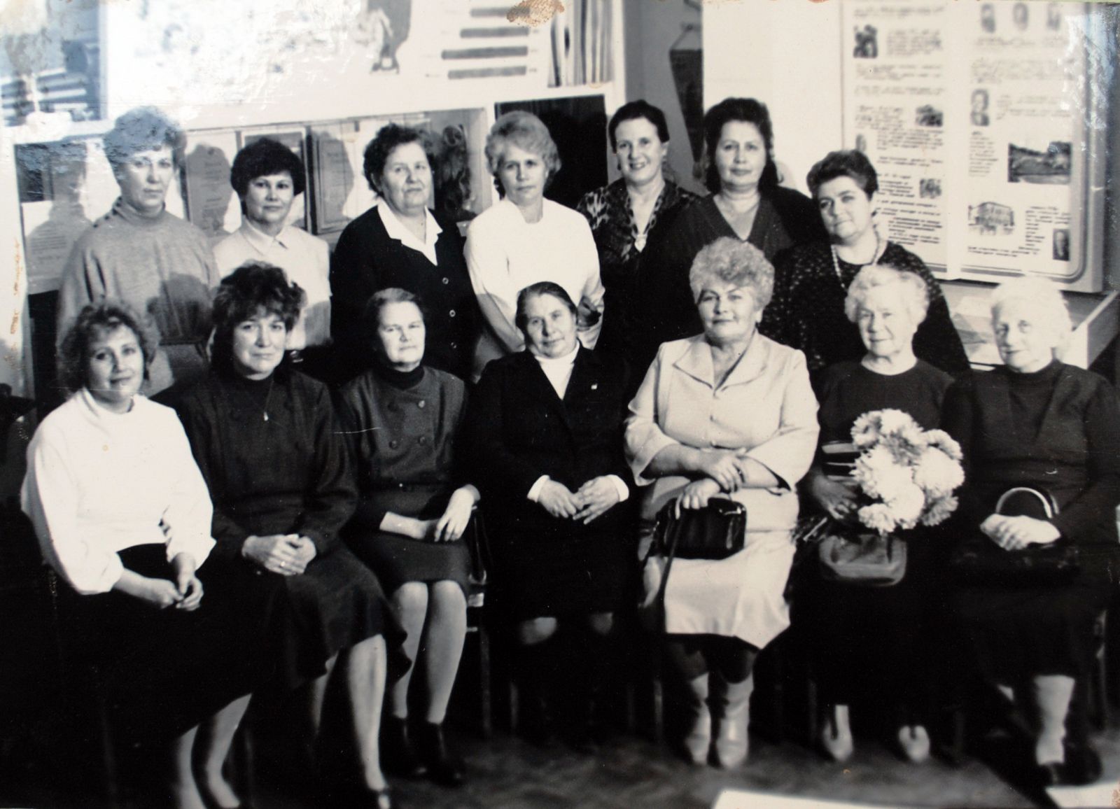 Фото: "На праздновании 10-летия музея городской пионерской организации. На фото: верхний ряд (слева – направо): Л.В.Титова, А.М.Коростылева, В.С.Фомичева, В.И.Конькова, Н.Л.Деревягина, Л.И.Титова, Т.В.Латышева. Внизу: О.В.Головакова, Н.А.Бойко, Е.Н.Озеринина, Л.А.Малкова, А.И.Наумова, В.П.Белизина, Р.Н.Иваницкая."