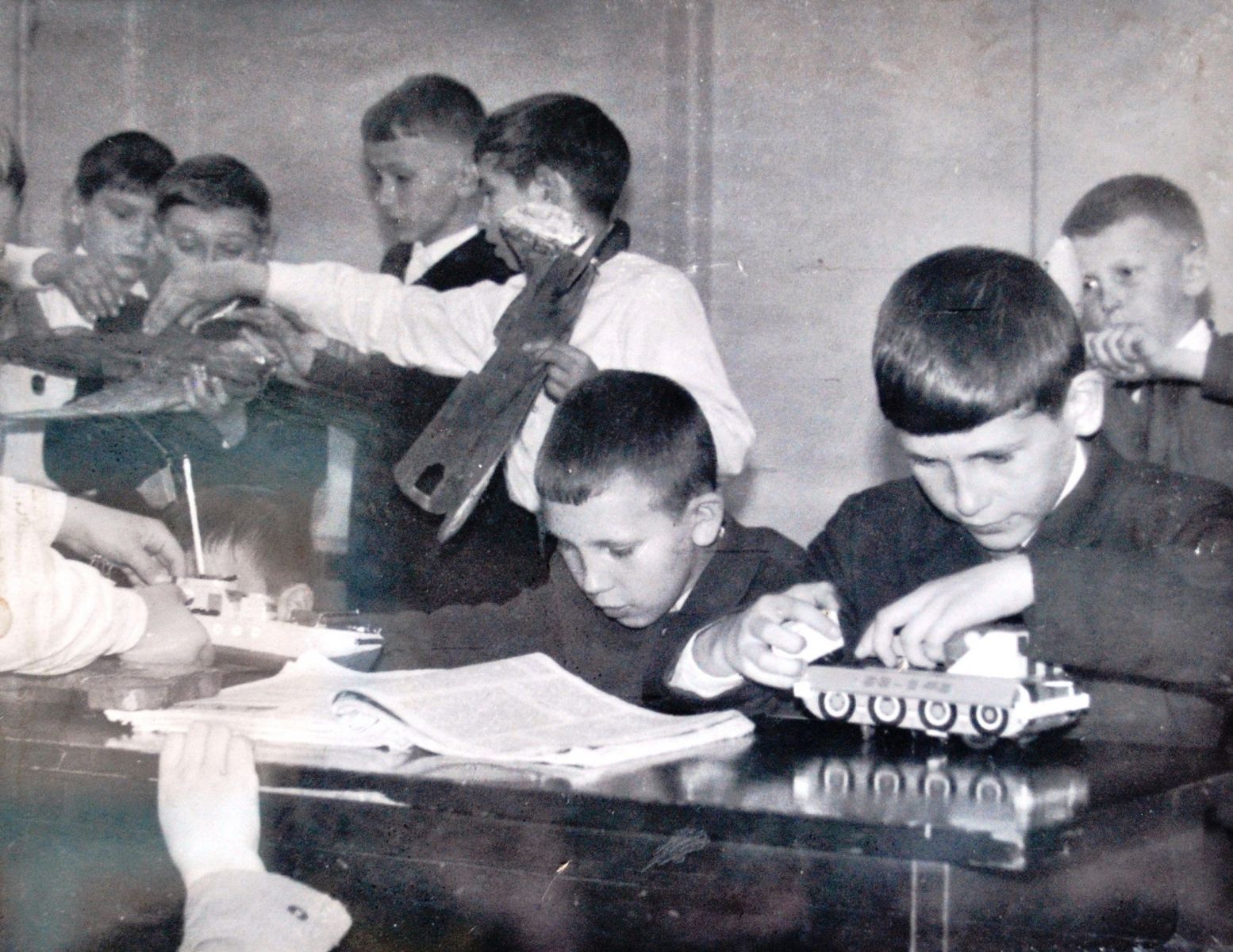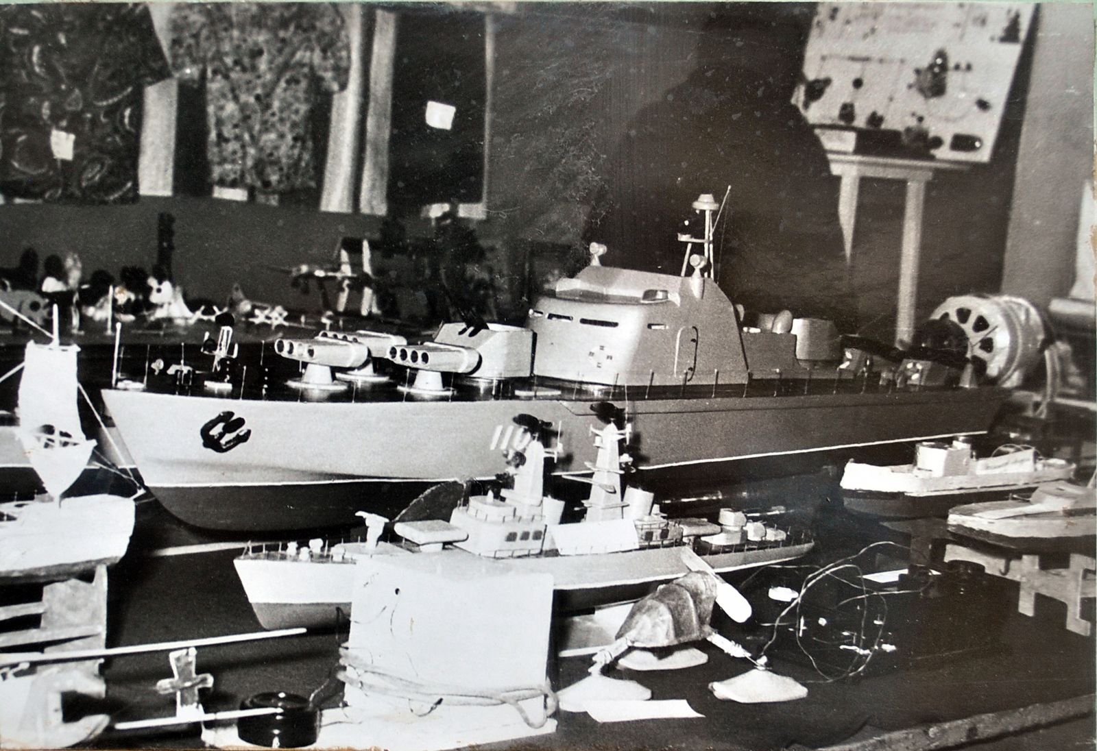 Фото: "На занятиях радиотехнического кружка (руководитель Ю.А.Александров)","Работы члена судомодельного кружка-ученика ср.школы №6 Низова Геры (1973г.)"