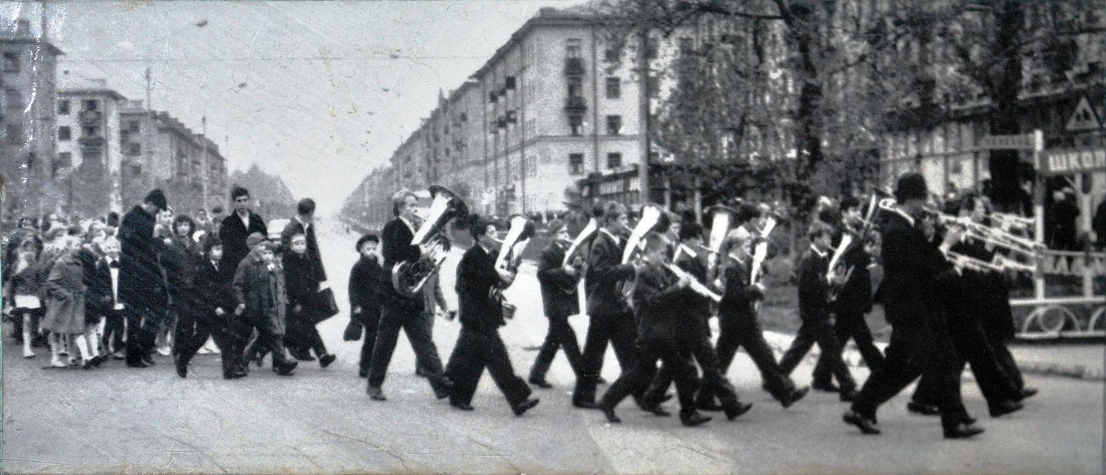 Фото: "Духовой оркестр школы-интерната №1 на праздничной демонстрации"