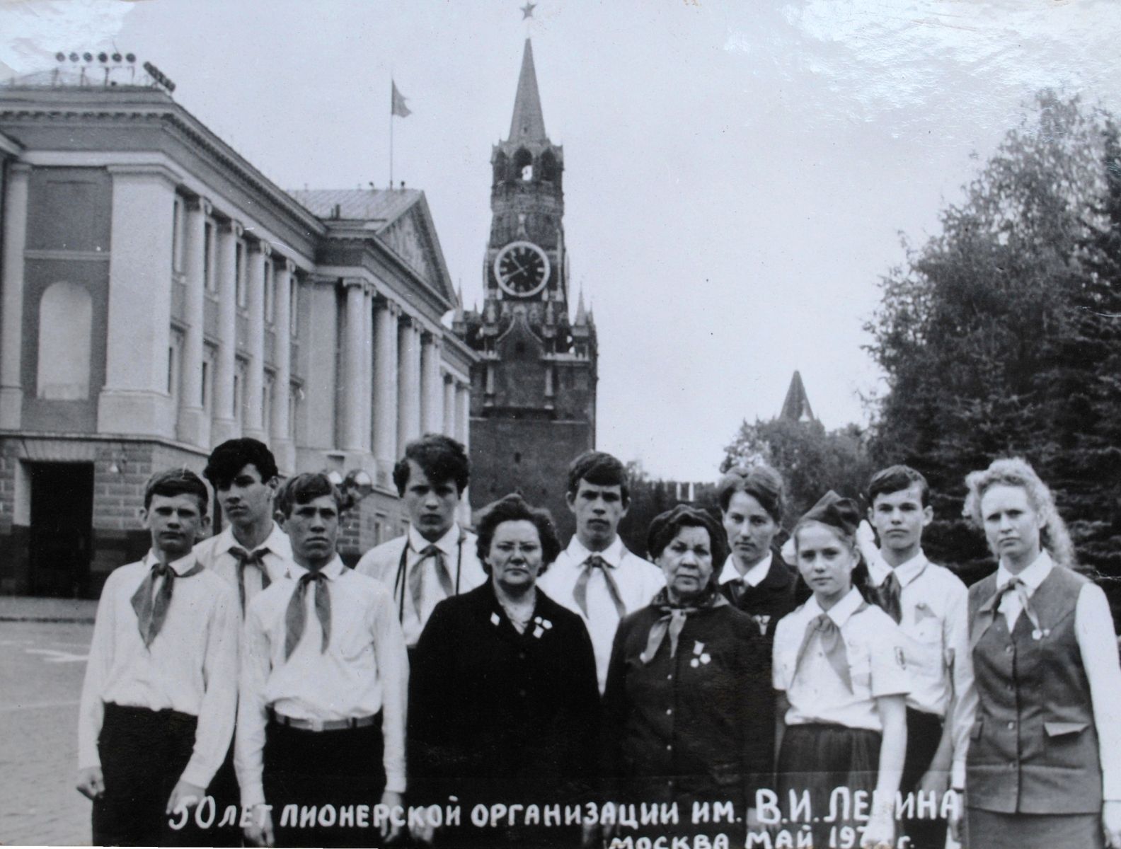 На фото: "Прасковья Федоровна Ганичева, директор средней школы №14", "Вологодская делегация пионеров-активистов в Москве (май 1972 г.). Среди них: Тиханов Андрей (шк. №18), Ганичева П.Ф., Коркина Галина Ивановна (одна из организаторов пионерского движения в стране)"