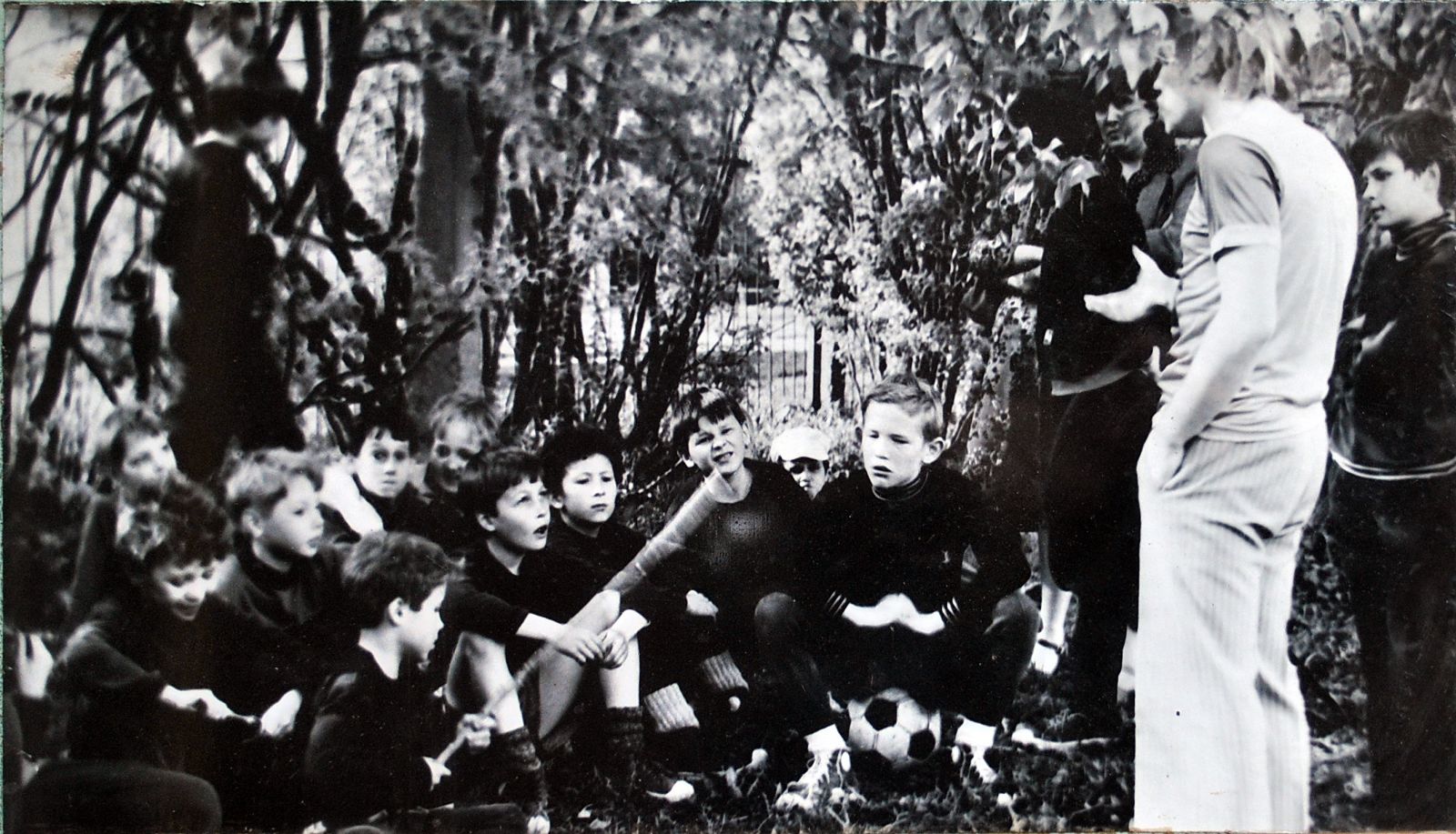 Фото: "Встреча с ветеранами в клубе", "Трубачев Виктор, рабочий ЛПЦ-2 - тренер по футболу с ребятами из клуба «Мальчиш-Кибальчиш»